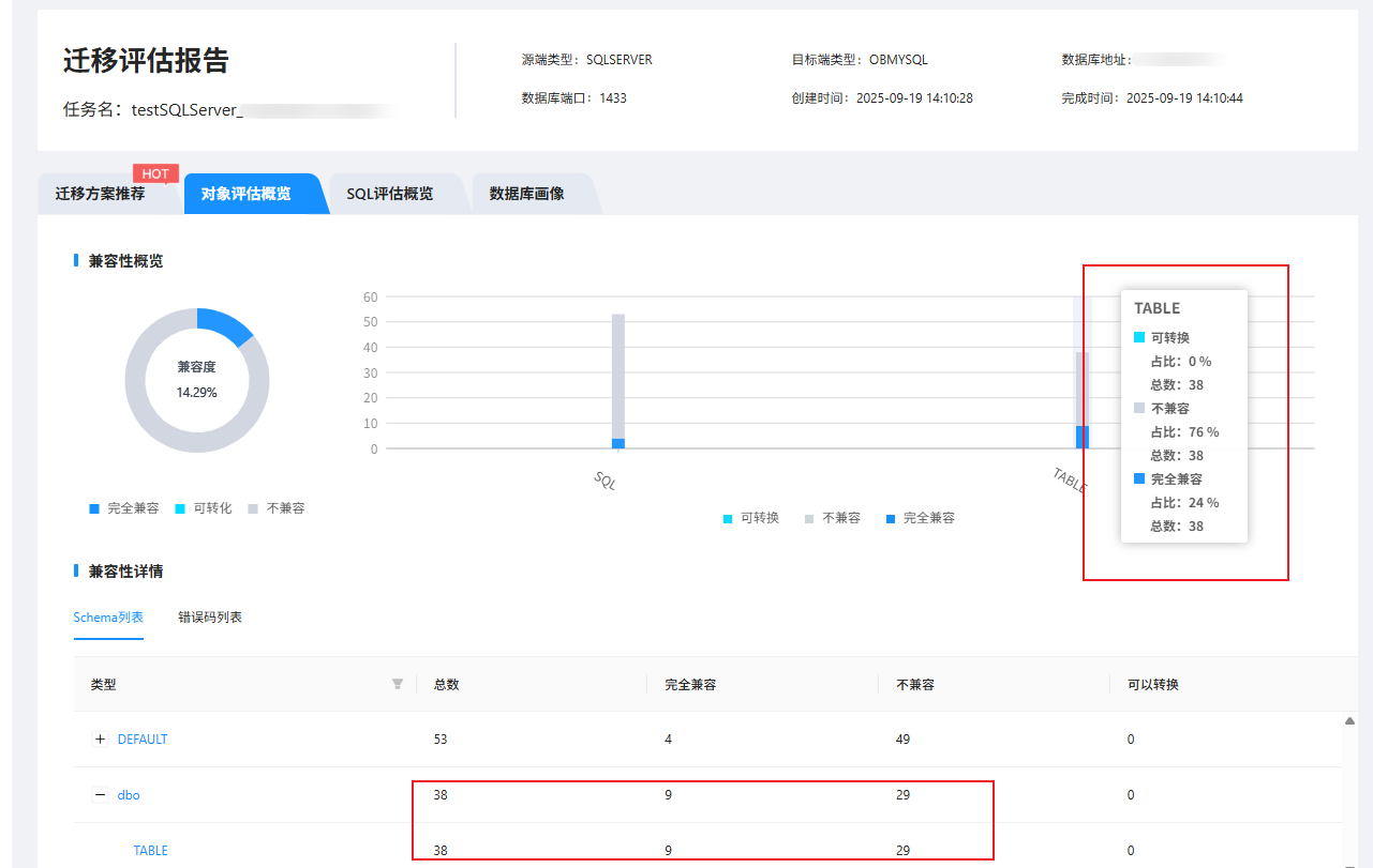 在迁移前,使用 OMA 工具对源端 SQL Server 进行全面扫描,精准评估对象兼容性。《评估报告》将清晰展示兼容的对象、不兼容的对象及其原因,为后续改造提供明确指引。