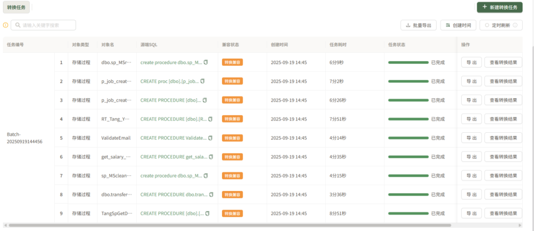 存储过程改造费时费力:存储过程等非表对象的转换还只能通过人工转换。