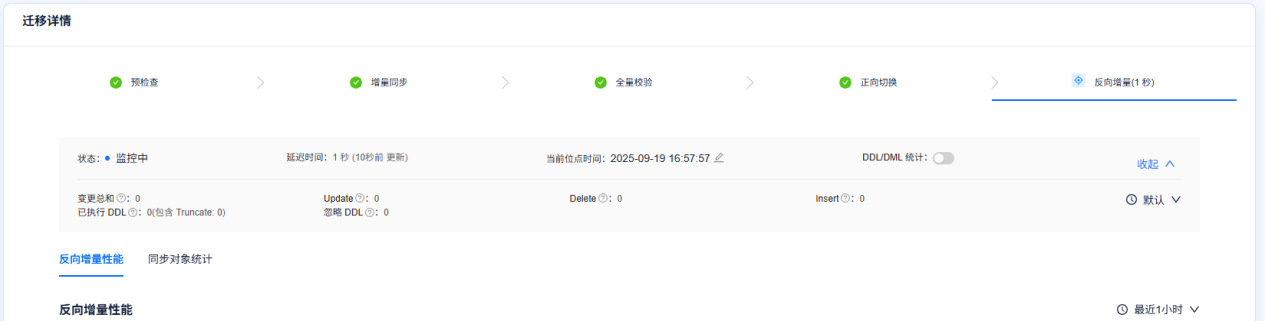 验证无误后,即可进行系统割接。此时,在 Action OMS中开启 反向增量同步(OceanBase -> SQL Server)。这一步是您信心的保障,万一目标端出现性能或兼容性问题,可立即将业务切回源端,反向同步会确保此期间的数据无缝回流,为迁移提供万无一失的“后悔药”。