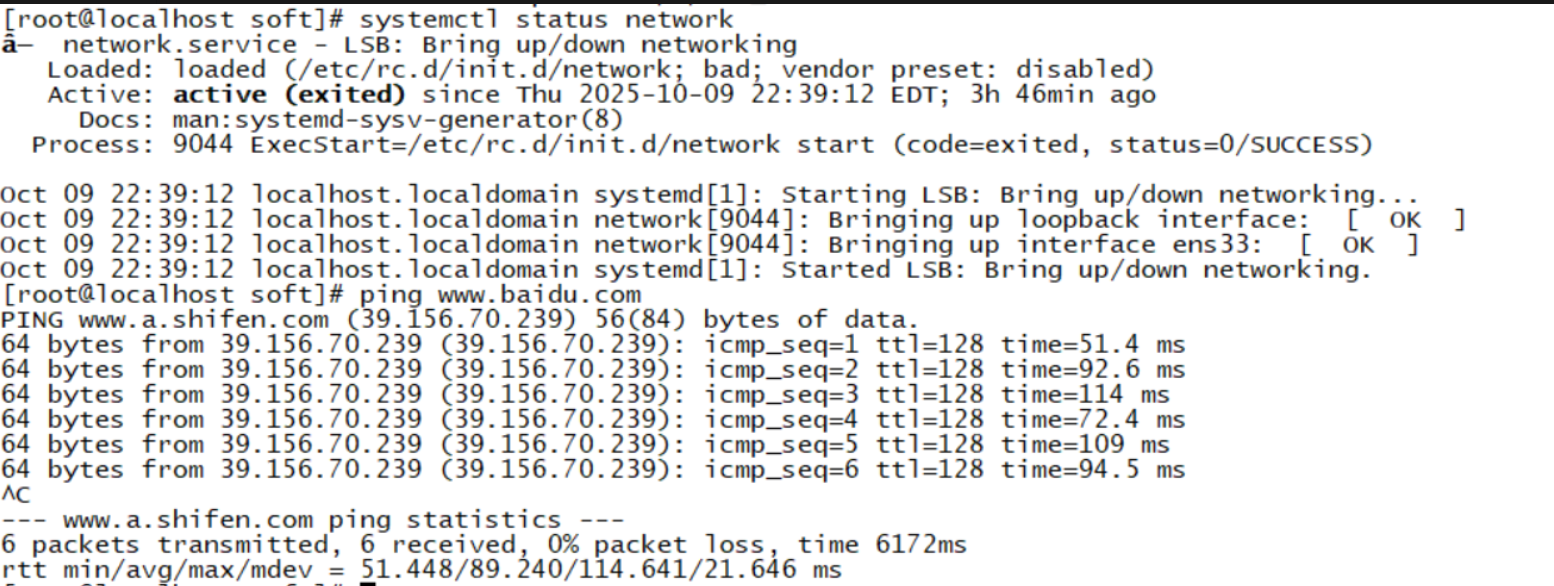 如果 ping 不通,检查虚拟机的网络服务是否正常运行,可执行 systemctl status network 查看网络服务状态,若未运行,执行 systemctl start network 启动。