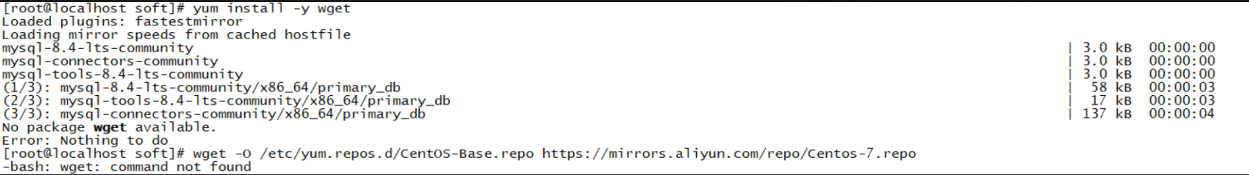 解决的方法就是需要配置系统基础的 Yum 源(如 CentOS 官方源或阿里云等第三方 CentOS 源),以获取 wget 等系统工具包。