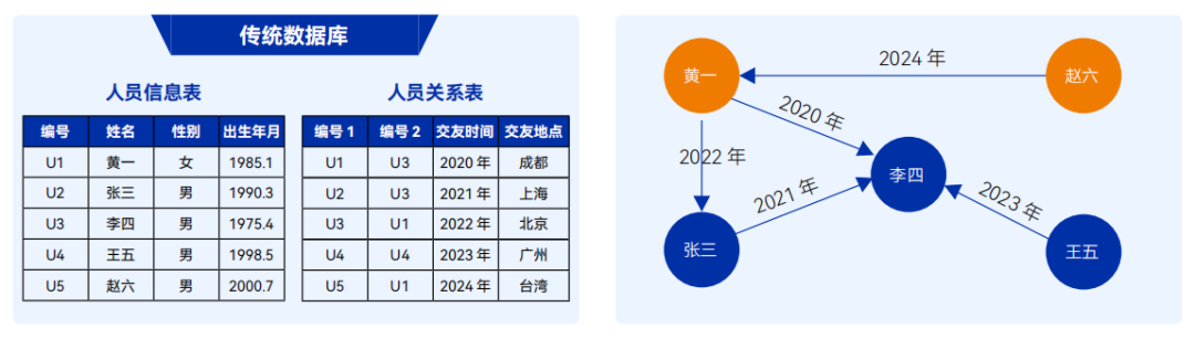 与传统关系型数据库的表格模型不同,图数据库以图结构存储和管理数据,将实体表示为节点,实体之间的关系表示为边,天然适合描述金融领域中复杂的关系网络。