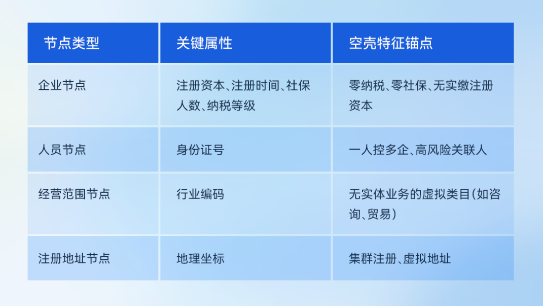 当多个企业节点共享同一注册地址节点,且通过复杂的人员节点形成交叉持股关系时,就可能构成空壳公司的典型特征图谱。