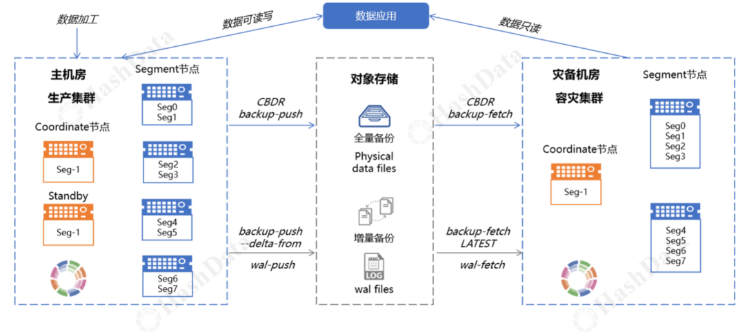 在这一背景下,酷克数据基于 Apache Cloudberry 2.0,为 HashData Lightning 2.0 打造了全新的灾备恢复工具 CBDR。CBDR 在继承 Greenplum WAL 归档与 PITR(时间点恢复) 思路的基础上,进行了系统性的扩展与优化:通过自动化的恢复点管理、跨机房的增量复制,以及支持查询的热备模式,CBDR 为分布式数据库提供了真正意义上的持续保护与业务连续性保障。