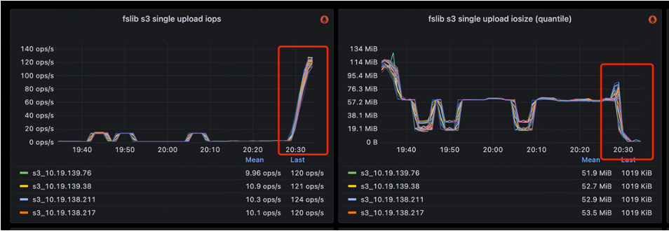 在写入吞吐上,传统模式以高频的小批次写入为主,吞吐有限;而 MergeCommit 通过聚合形成大批次写入,大幅提升了整体吞吐能力。实际对比显示,在关闭 MergeCommit 的情况下,StarRocks 的 IOPS 通常在 140 左右;而开启 MergeCommit 后,合并了大量写入,IOPS 可降低到 10以下。实现近 10 倍提升,写入的 I/O Size 也提升约 10 倍。