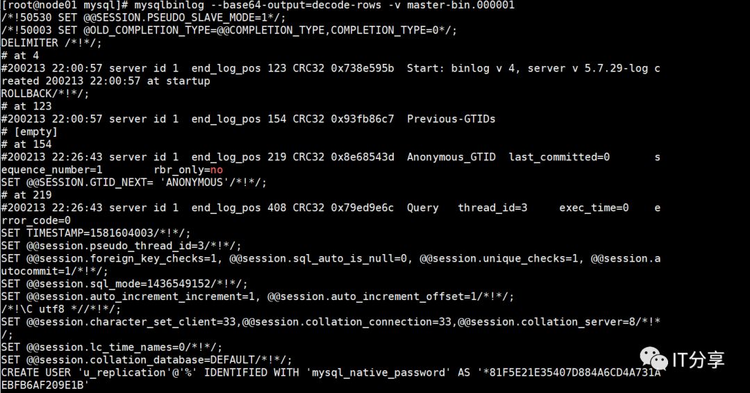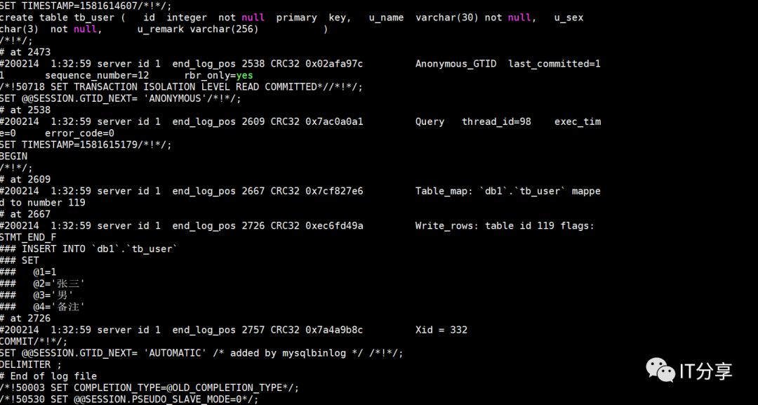 查询二进制文件:可以看到一些列的日志信息,以及一些的sql语句的执行。
