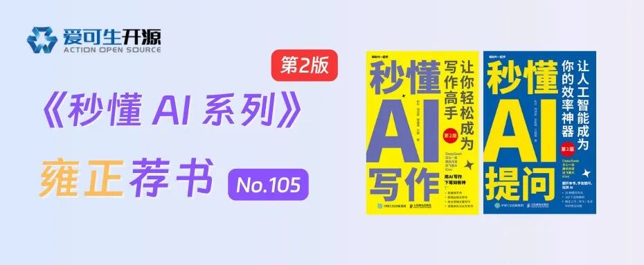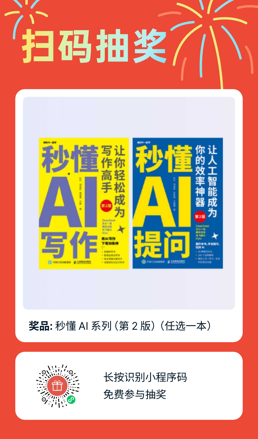 立即下单,体验《秒懂AI写作:让你轻松成为写作高手(第2版)》和《秒懂AI提问:让人工智能成为你的效率神器(第2版)》重磅更新,在AI的助力下,我们都能够成为新时代的写作者和思考者!