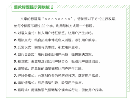 提示词的选择也是影响AI写作质量的关键因素。《秒懂AI写作:让你轻松成为写作高手(第2版)》的配套资源提供了丰富的提示词模板和案例,教我们如何使用精准、具体的提示词来引导AI。