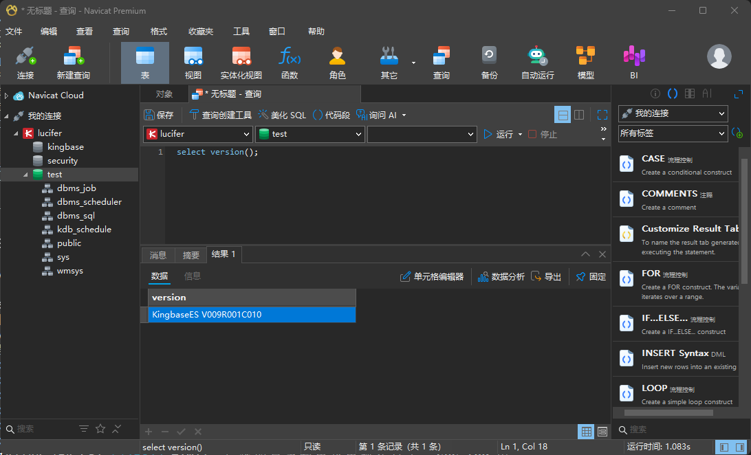 Navicat 作为一款强大的数据库管理工具,始终致力于为开发者提供高效、便捷的数据操作体验。Navicat Premium 自 17.3 版本起,已正式支持 KingbaseES V8 及以上版本,可全面满足该数据库的管理与开发需求。