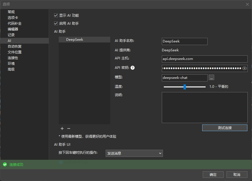 但是不是内置的 AI 大模型,需要自行提供 API: