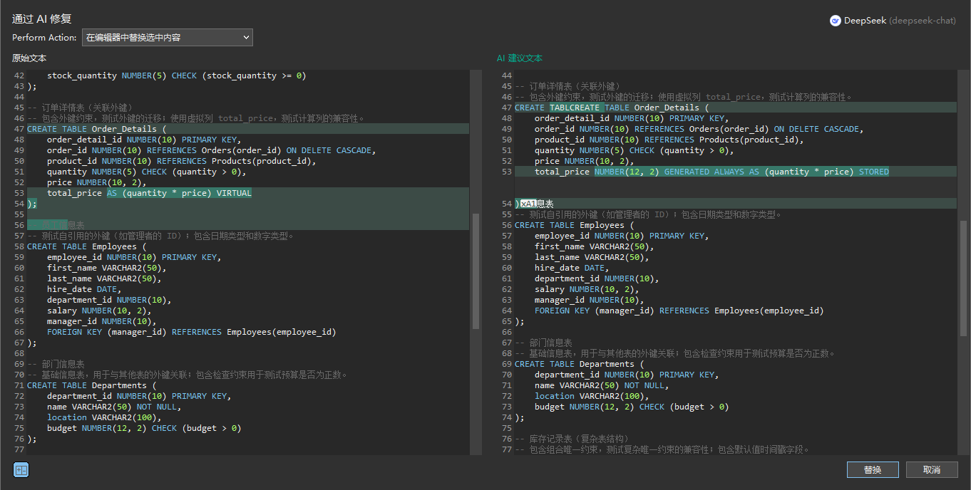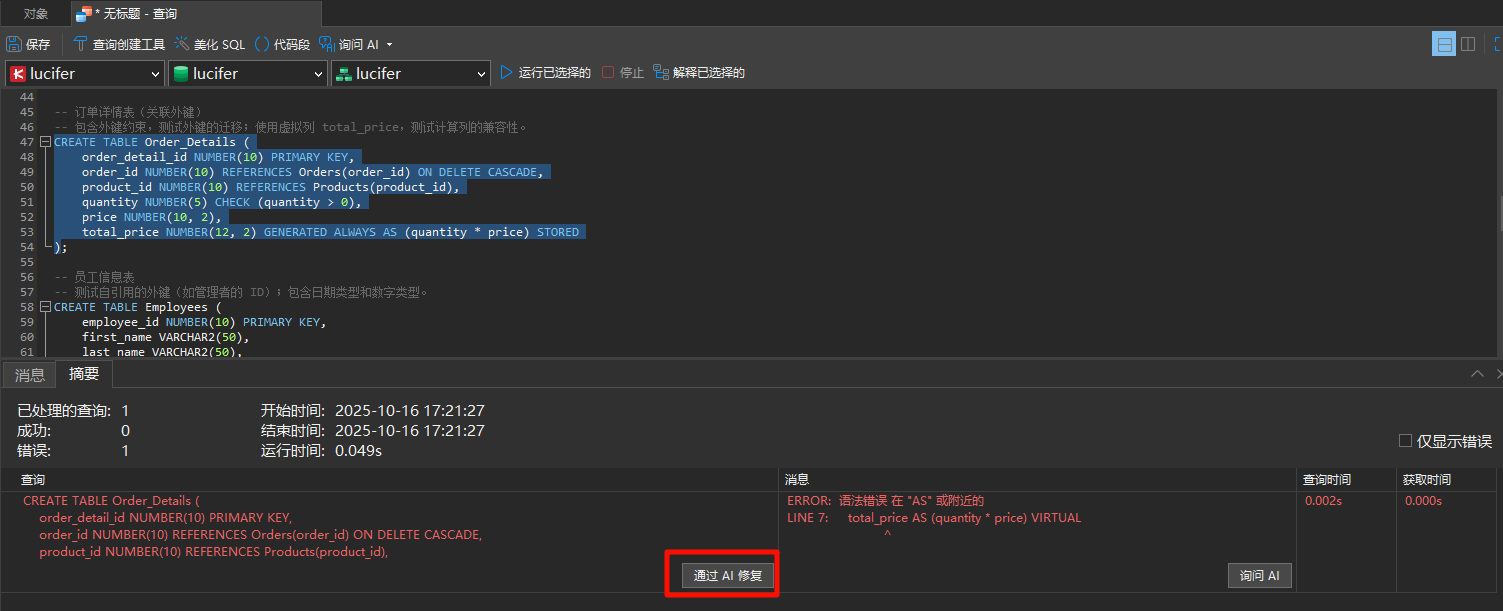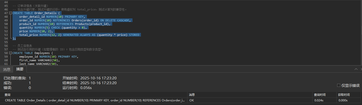 -- 包含外键约束,测试外键的迁移;使用虚拟列 total_price,测试计算列的兼容性。