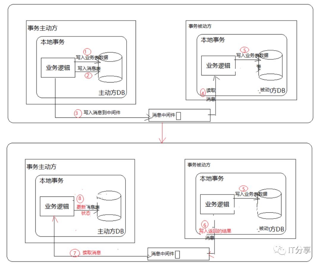 下面把分布式事务最先开始处理的事务方成为事务主动方,在事务主动方之后处理的业务内的其他事务成为事务被动方。
