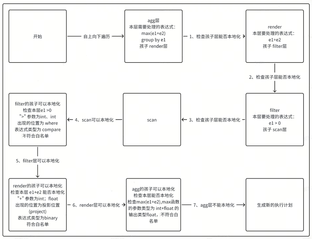 ① GroupBy:检查 group by 列与聚合函数(含输入类型、个数及运算逻辑)能否本地化;