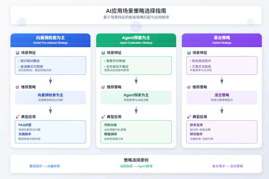 那么问题来了,混合检索、预检索、实时检索,我们什么时候该用哪种策略?