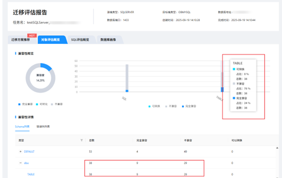 在升级前,使用 OMA 工具对源端 SQL Server 进行全面扫描,精准评估对象兼容性。《评估报告》将清晰展示兼容的对象、不兼容的对象及其原因,为后续改造提供明确指引。