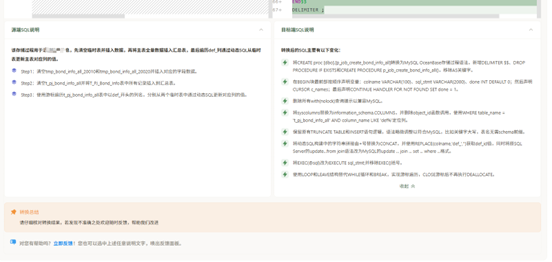 零误差交付:结合 SQLShift 在复杂对象的数据类型隐式转换、业务逻辑遗漏等进行零误差交付,帮助客户在数据库复杂对象转换升级过程中间的一致性保障,降低生产事故风险。