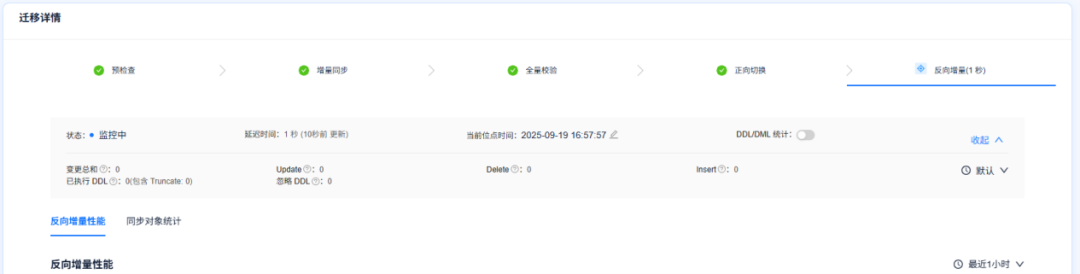 验证无误后,即可进行系统割接。此时,在 Action OMS 中开启反向增量同步(OceanBase -> SQL Server)。这一步是您信心的保障,万一目标端出现性能或兼容性问题,可立即将业务切回源端,反向同步会确保此期间的数据无缝回流,为升级提供万无一失的“后悔药”。