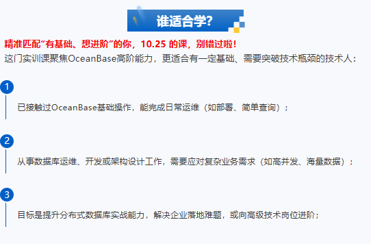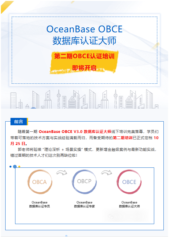 OceanBase OBCE V3.0 数据库认证大师第二期培训10月25日即将开启!!!
