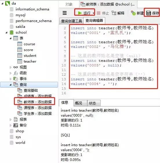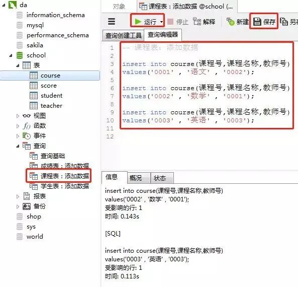 select 查询结果,如: [学号,平均成绩:组函数avg(成绩)]from 从哪张表中查找数据,如: [涉及到成绩:成绩表score]where 查询条件,如: [b.课程号='0003' and b.成绩>80]group by 分组,如: [每个学生的平均:按学号分组]
