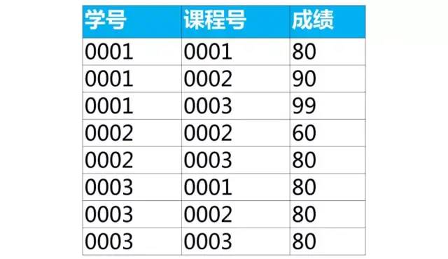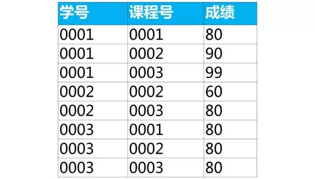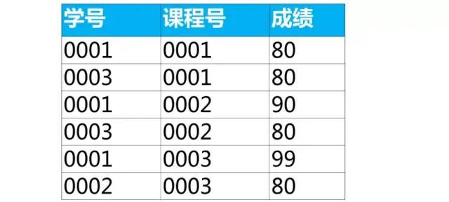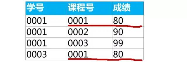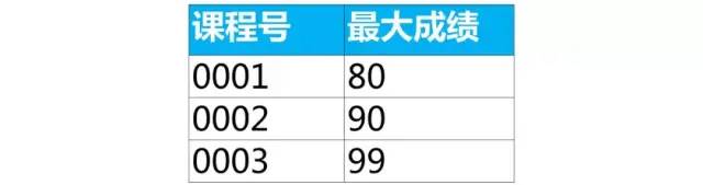 上面查询结果课程号“0001”有2行数据,是因为最大成绩80有2个