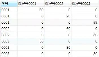 (case 课程号 when '0003' then 成绩 else 0 end) as '课程号0003'