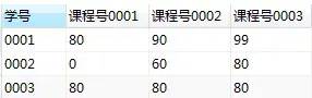 (case 课程号 when '0001' then 成绩 else 0 end) as '课程号0001',