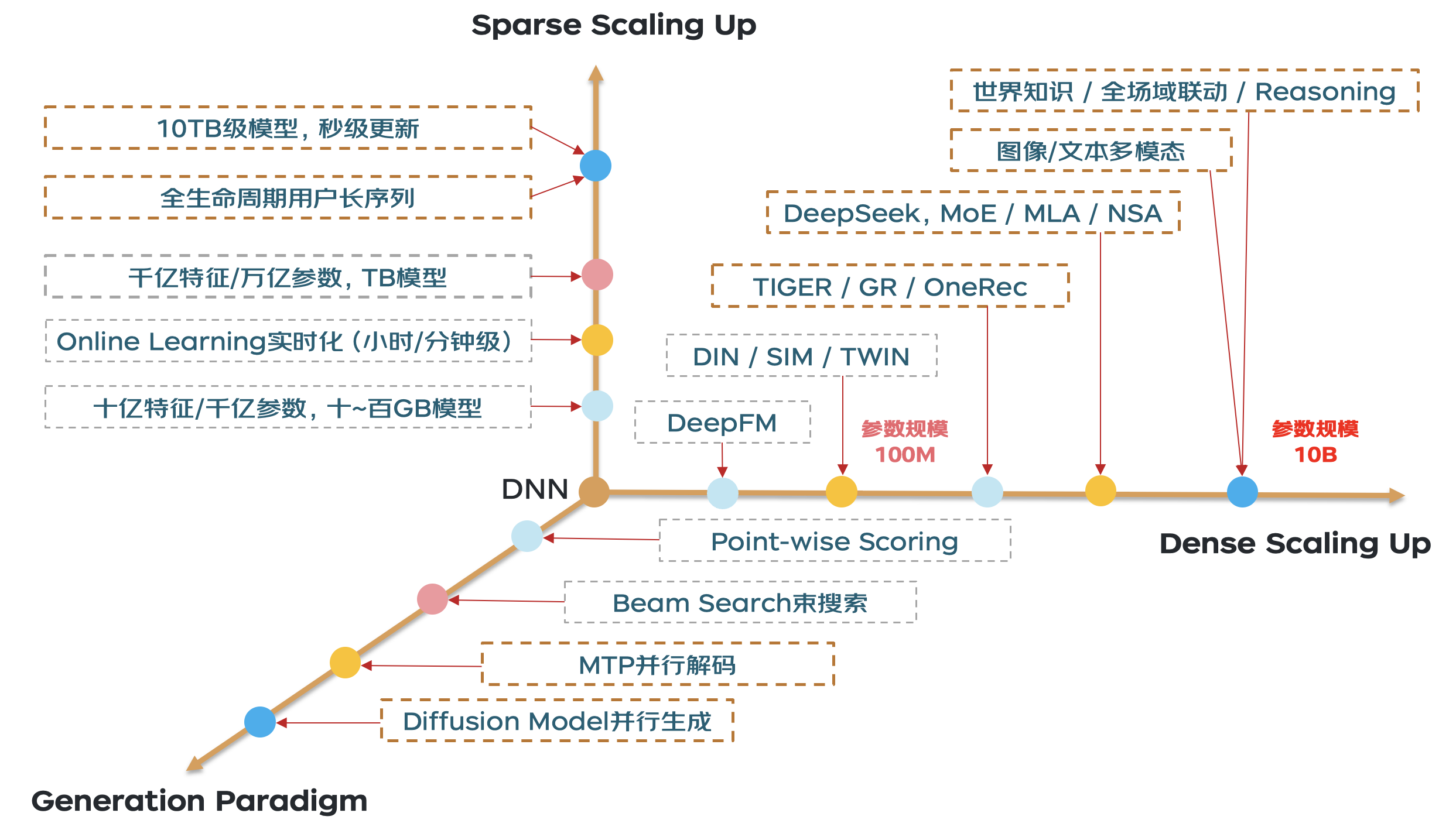 小结:我们的初衷是工程先行,借鉴大语言模型(LLM)领域的前沿技术能力(如MLA/NSA、MTP/Diffusion等),构建能够同时支持Sparse Scaling Up、Dense Scaling Up以及多种生成范式的高效生成与推理系统。这不仅涵盖若干前沿技术点,更是一条具备高度可行性的技术发展路径!