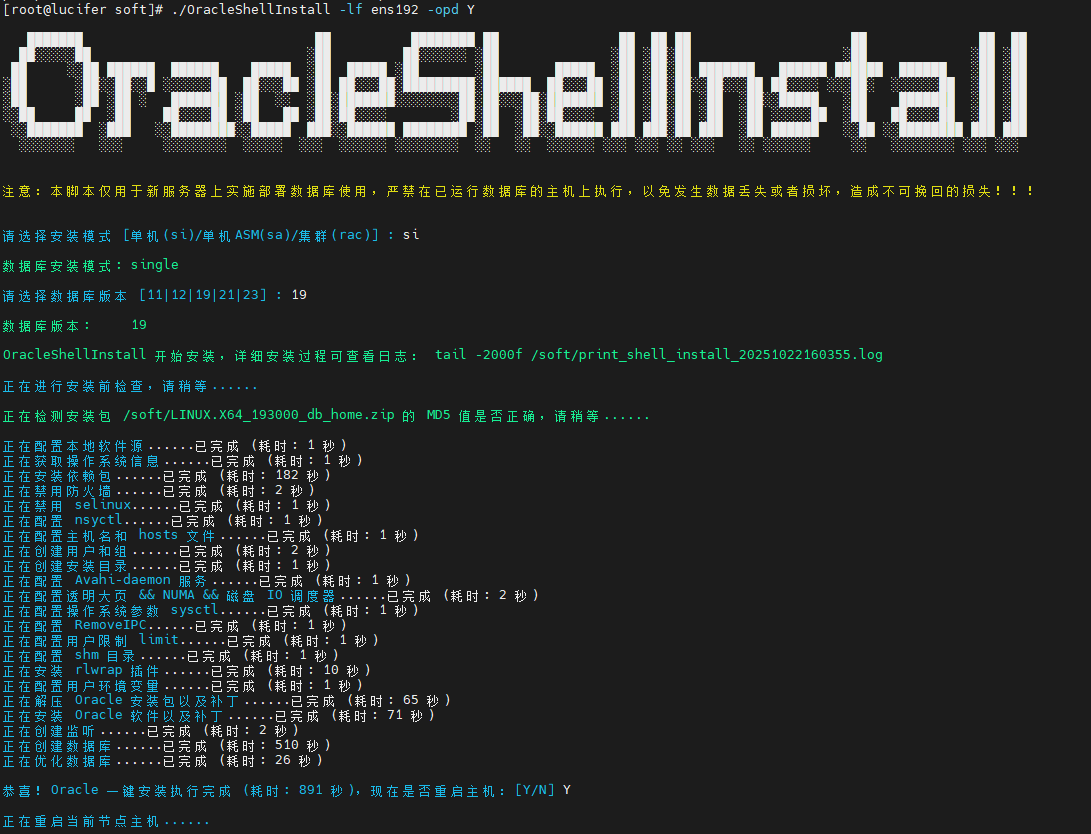 [root@lucifer soft]# ./OracleShellInstall -lf ens192 -opd Y