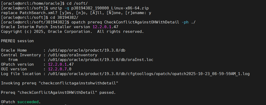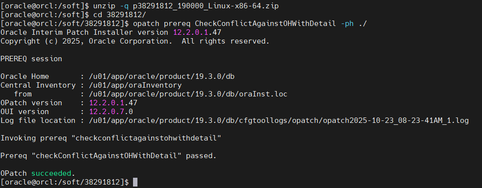 opatch prereq CheckConflictAgainstOHWithDetail -ph ./
