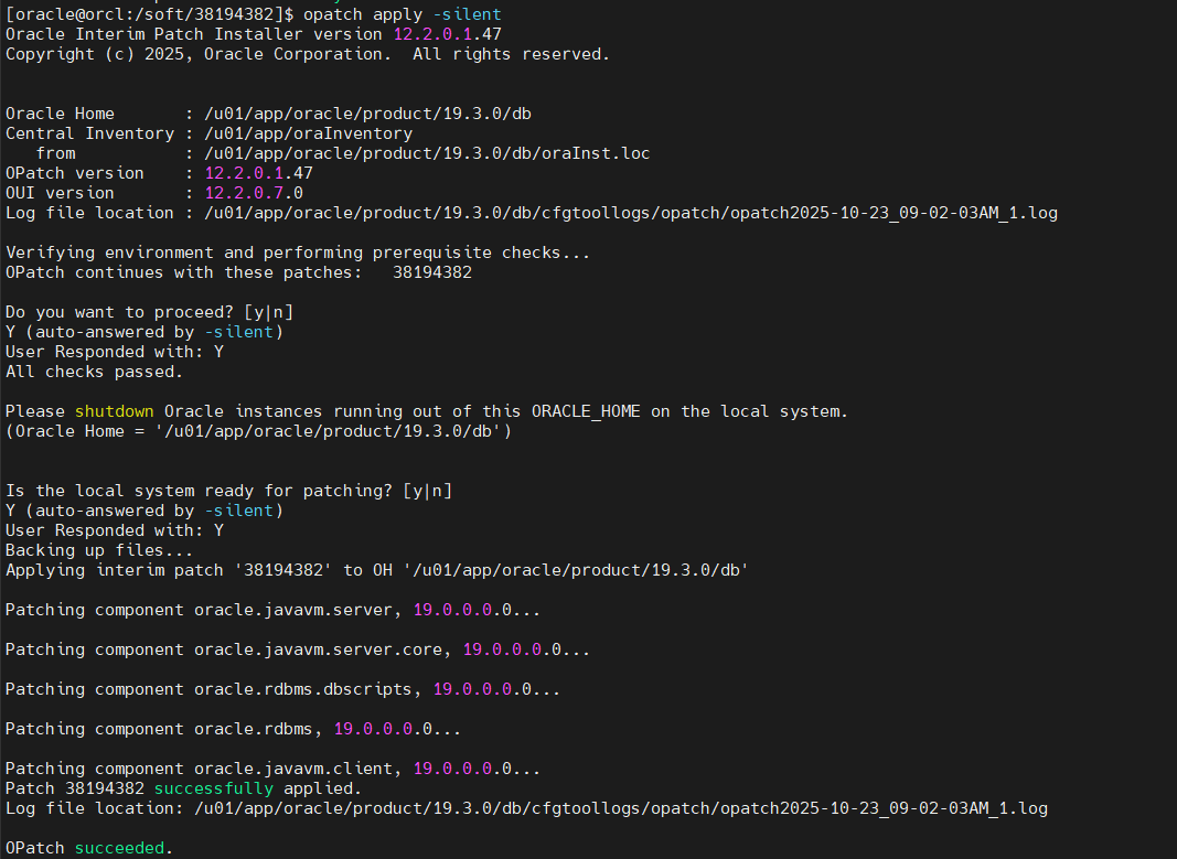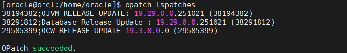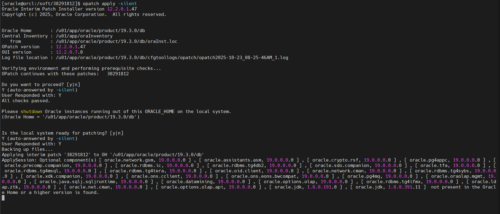 OPatch 补丁没有更新,但是 12.2.0.1.47 依然适用于 19.29,可以正常打补丁: