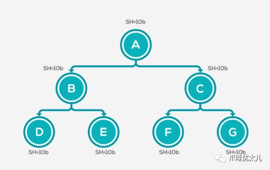 假如内存中存在以下的对象以及他们之间的引用关系,A引用了B和C,B引用了D、E,C引用了F、G,我们假设每一个对象本身在内存中是占10个字节,如下图所示:
