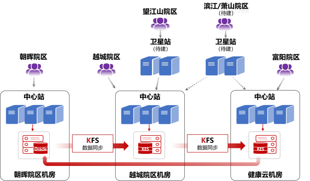 相较于单一院区医院的信创改造,浙人医作为多院区集团化医院,其信创建设面临着更为复杂的挑战:各院区、业务系统之间数据兼容互通难度高;信创改造期间各院区需要保持互联互通能力,业务连续性要求高;考虑到跨院区跨城市之间的异地协同需求,数据库还需支持异构同步双写并行、多院区互为灾备、多院区负载均衡等容灾能力。