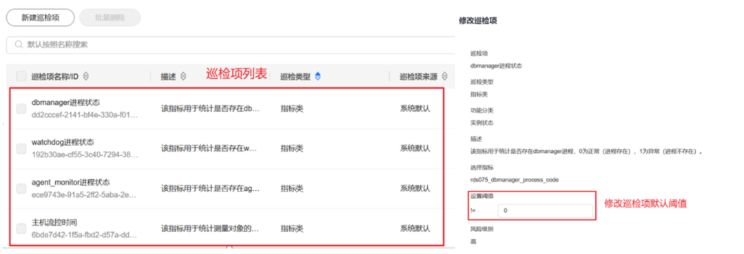 运维人员可以通过巡检项管理,了解当前已经支持的所有巡检项,并根据实际需要修改巡检项全局默认阈值。