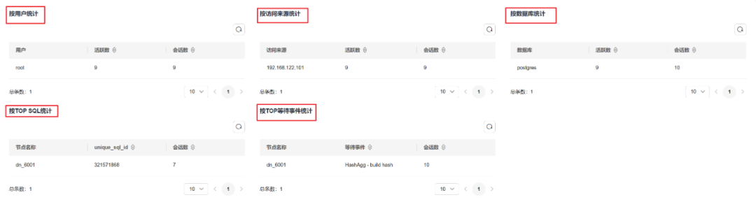可以通过多维度实时会话统计快速掌握当前实例的整体负载情况。
