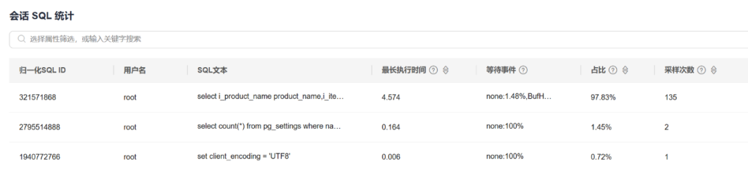 可以通过历史会话分析,查看实例在过去一段时间内等待事件的整体趋势以及TOP SQL信息。
