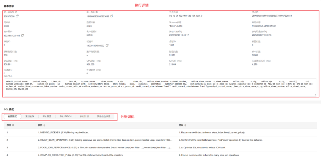 运维人员可以通过慢SQL诊断,对慢SQL进行一站式的采集分析和调优动作。