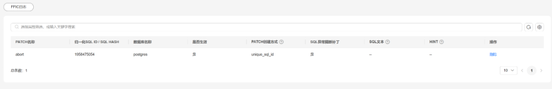 运维人员可以通过SQL Patch管理查看不同SQL已经创建的SQL Patch信息。