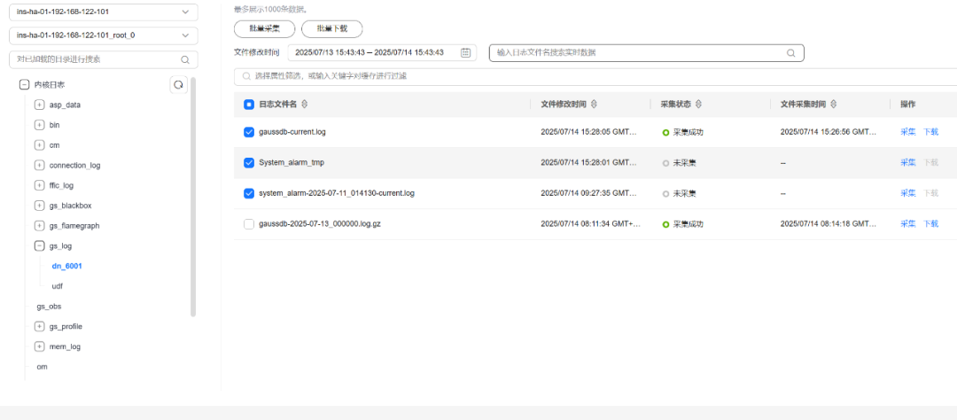 当发生异常,需要定位GaussDB相关组件的运行日志时,运维人员可以通过日志持久化在页面直接下载已经转储的日志文件,或通过在页面上实时浏览方式查找需要的日志文件并进行采集下载。