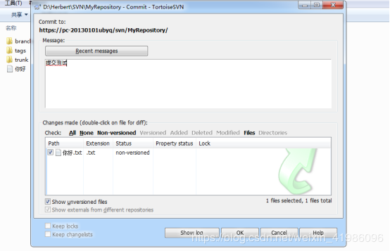 新建一个文本文件,修改名称为你好,进行提交