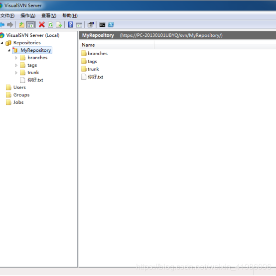 我们可以看到刚才建立的版本库信息已经下载到本地