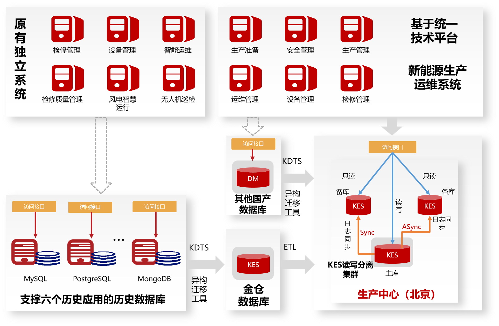中广核要求新能源生产运维系统以分步替换方式实现从局部到整体的信创转型。电科金仓为此提供了准在线、低侵扰、全数据且高效平滑的分步替换方案。