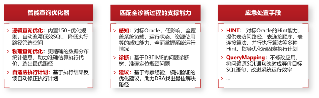 ✦ 自适应基数估计,针对SQL调优中常见的基数估计偏差,可利用实际执行结果自动修正,通过迭代优化生成更优执行计划。