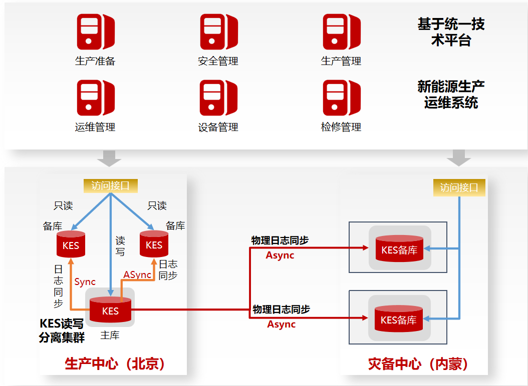 中广核新能源生产运维系统作为核心业务系统,需具备完善的容灾能力,确保在各种故障下实现7×24小时持续运行。电科金仓针对其业务连续性目标与“异地容灾、数据同步、快速切换、数据可靠、持续运行、服务可用”等关键需求,设计了一套安全稳定、成本可控的异地双中心高可用部署方案。