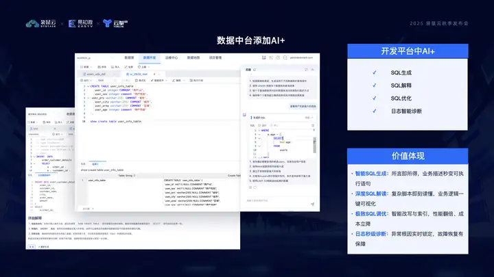 发布会上,袋鼠云技术专家小刀带来了《Data+AI融合架构:驱动企业智能化的技术引擎》专题演讲,为我们深入解读了AI 是如何帮助产品突破核心挑战,重构人机交互逻辑的。