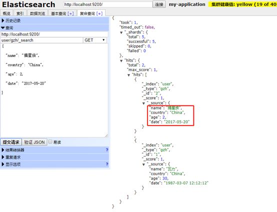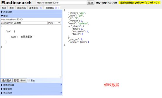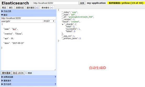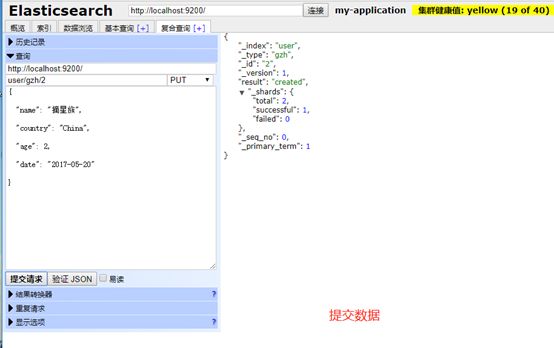 在user索引下增加一条数据,我们点击复合查询,然后构建json串,就可以增加数据