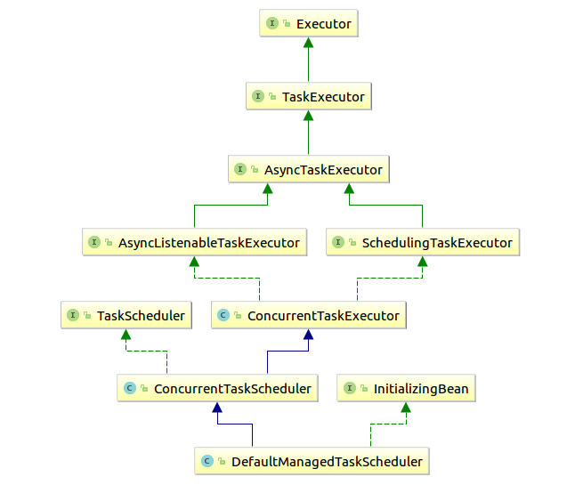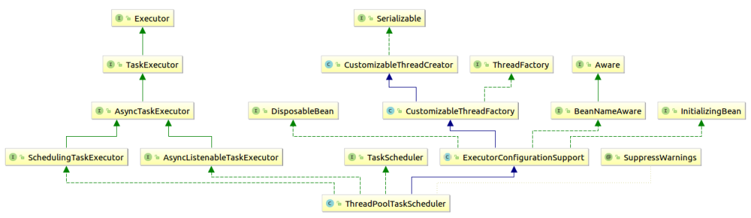 实现了 Spring 的 TaskScheduler 接口, 包装了原生的 java.util.concurrent.ScheduledThreadPoolExecutor