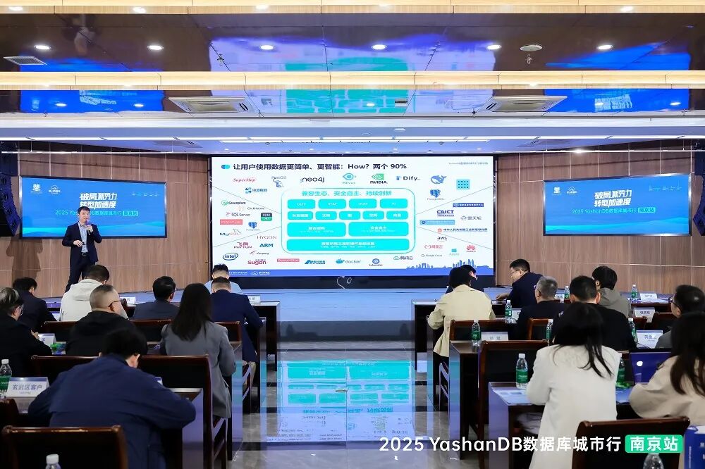 10月28日,2025 YashanDB数据库城市行南京站活动圆满结束,本次大会以“破局新势力·转型加速度”为主题,在江苏国际数据港、江苏省信息技术应用学会、中国中小企业协会(江苏)办事处等单位的鼎力支持下,汇聚了华东区域政务、医疗、教育、能源等多个关键行业近200余位客户与合作伙伴,聚焦Oracle替代技术路径与核心场景转型,见证崖山科技华东区域总部正式落地,为长三角数字经济发展注入国产数据库新动能。