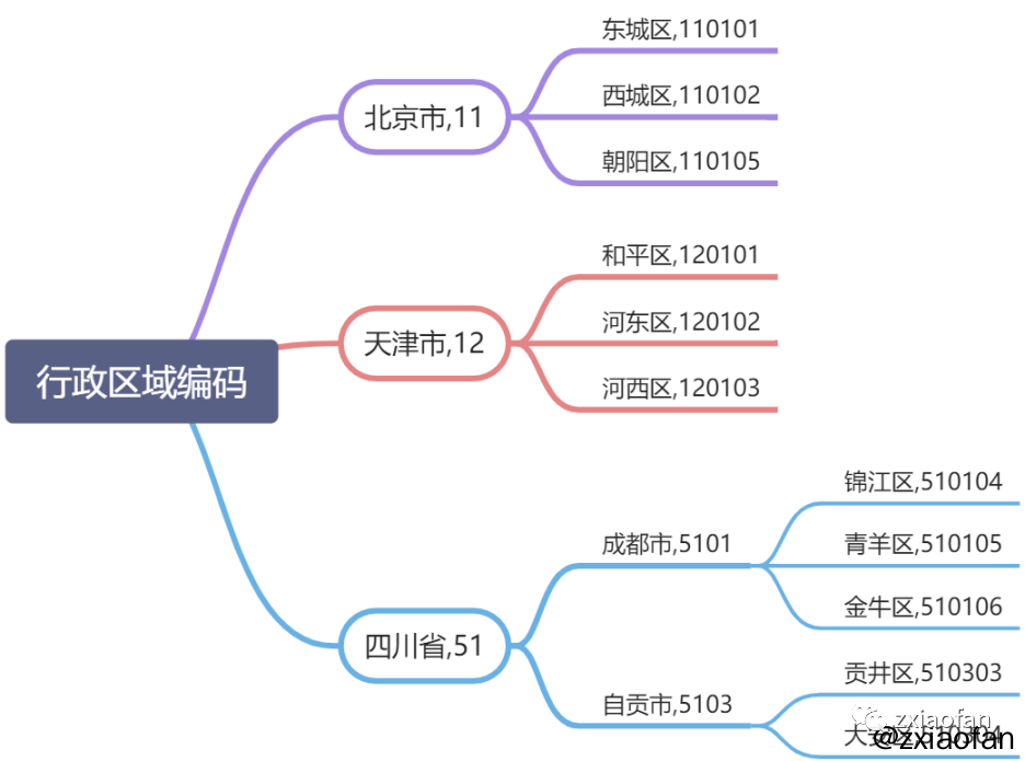 树形结构数据的特征是 有明显的所属关系,比如 “行政区域编码”示例中“朝阳区”属于“北京市”,“组织架构”示例中“社交产品部”属于“产品中心”。