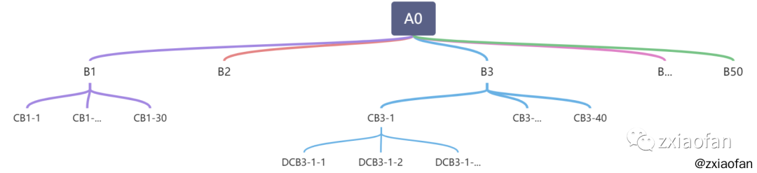 toB系统,系统中有众多企业(company1 ~ company666),每个企业都有自己的部门树。示例:某公司 A0 下有 B1 ~ B50 这 50 个一级部门;每个一级部门 下 又有若干 个二级部门(比如 B1 下 有 CB1-1 ~ CB1-30 这 30 个二级部门,B3 下 有 CB3-1 ~ CB3-40 这 40 个二级部门);同理,每个二级部门下又有若干个三级部门。对于大企业而言,部门达到几千上万。此外需要注意的是,企业的部门信息是可能随时变动的。而现在我们的诉求是:查询 第N级某个部门的所有上级部门信息。