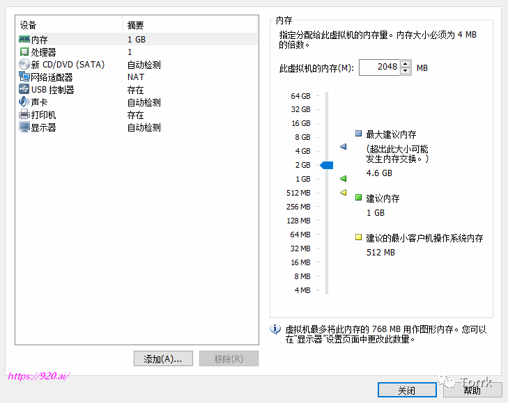 设置内存大小,我的计算机内存为6GB,所以给了2GB